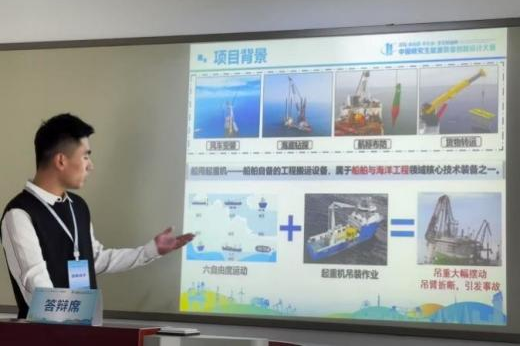 “刚进实验室时,连控制算法的基础代码都看不懂。”黄哲坦言,自己并非“天赋型选手”。然而面对船用起重机动力学建模的复杂课题,他没有丝毫退缩,而是选择用最踏实的办法去攻坚克难。他每天提前1小时到实验室梳理文献,跟着导师逐句推敲论文,用3个月时间啃下了3本专业书籍。为完成吊装减摇装备的控制参数调试,他每天废寝忘食地“钉”在船舶机电一体化实验室平台上开展样机测试,深夜的实验室灯光见证了他的坚持,最终实现吊重摆动幅度降低80%以上的成果,这一成果目前已成功应用于深远海极地吊机项目。