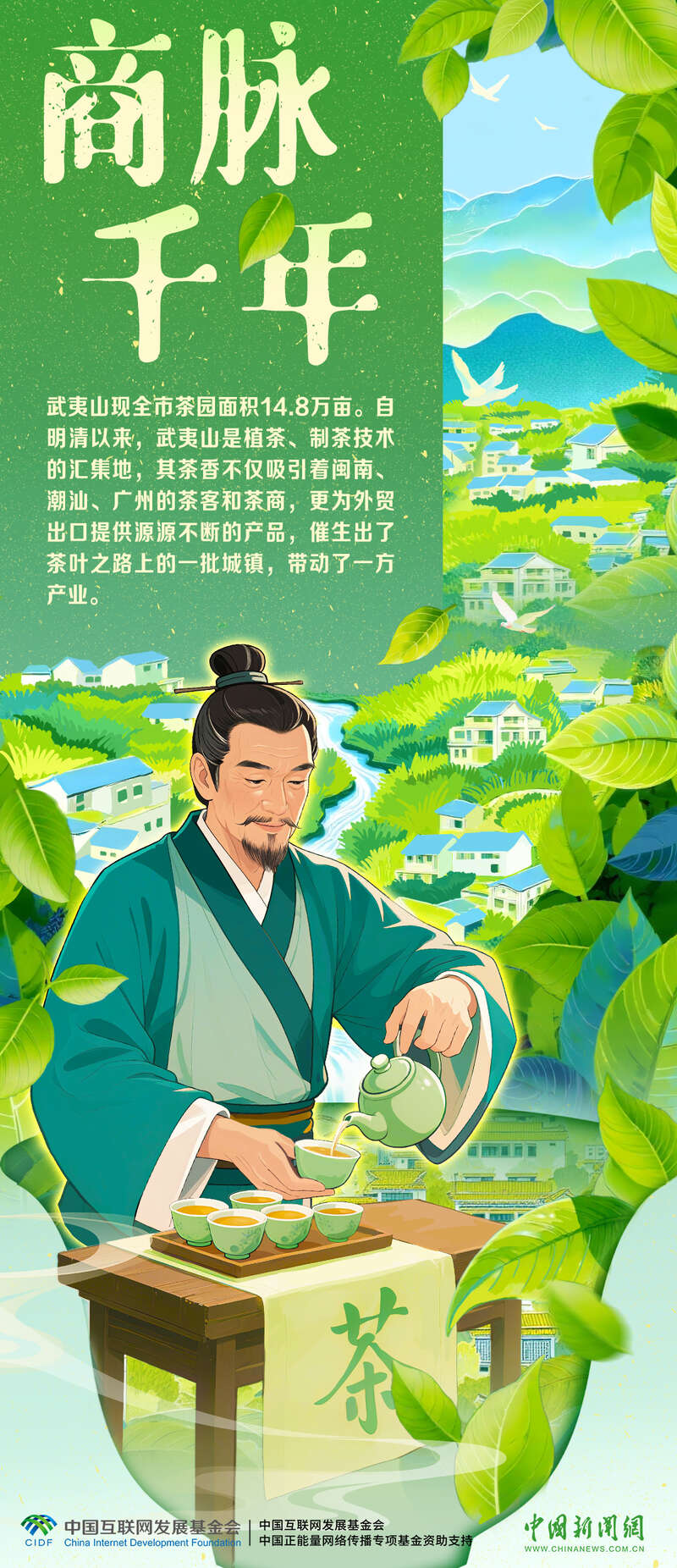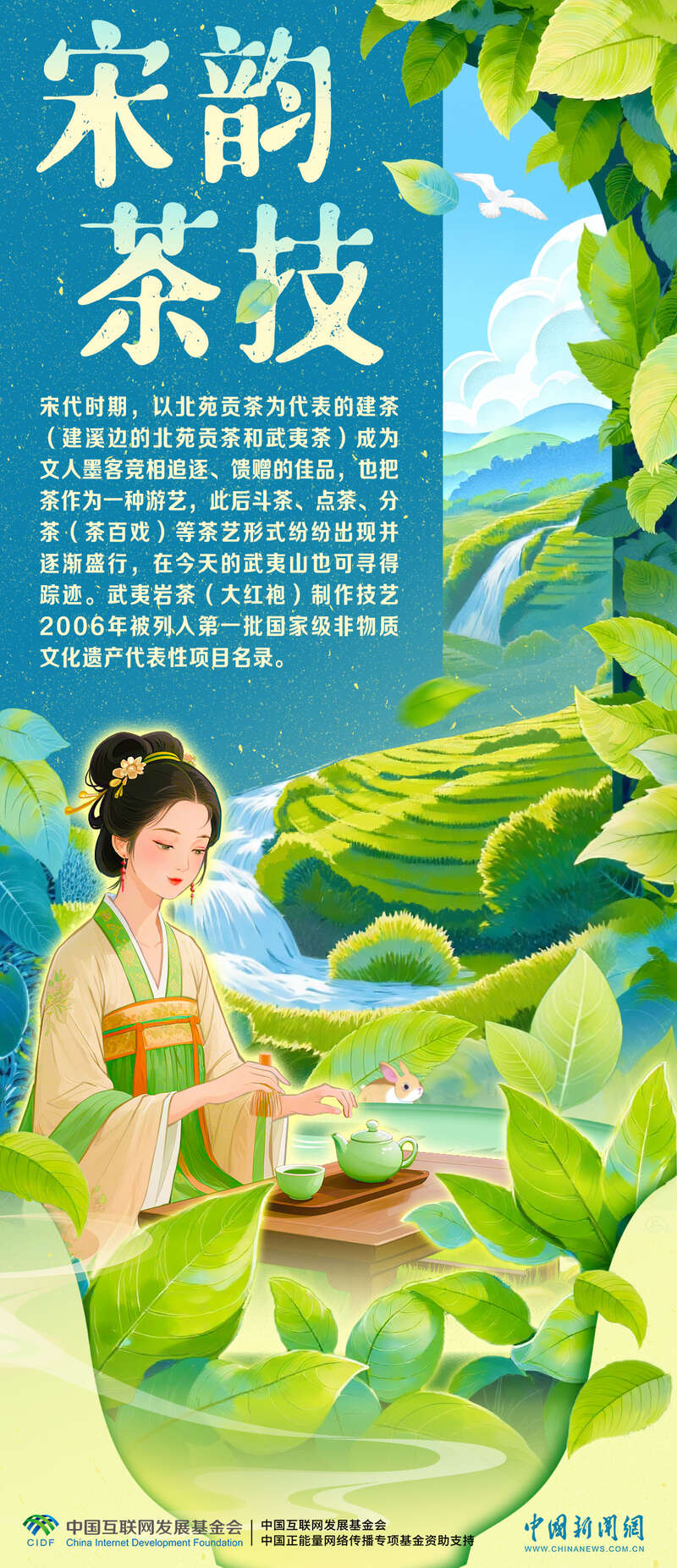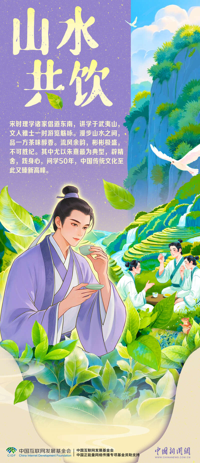 这里是中国茶文化的重要发源地,早在宋代便盛产北苑贡茶,理学大师朱熹也曾在此讲学,山水间流淌着人文与思想的交融。武夷岩茶(大红袍)制作技艺2006年被列入第一批国家级非物质文化遗产代表性项目名录。如今,茶香早已跨越山海,走进全球上百个国家的杯中。跟随画笔,探寻这缕武夷茶香背后的文化脉络→