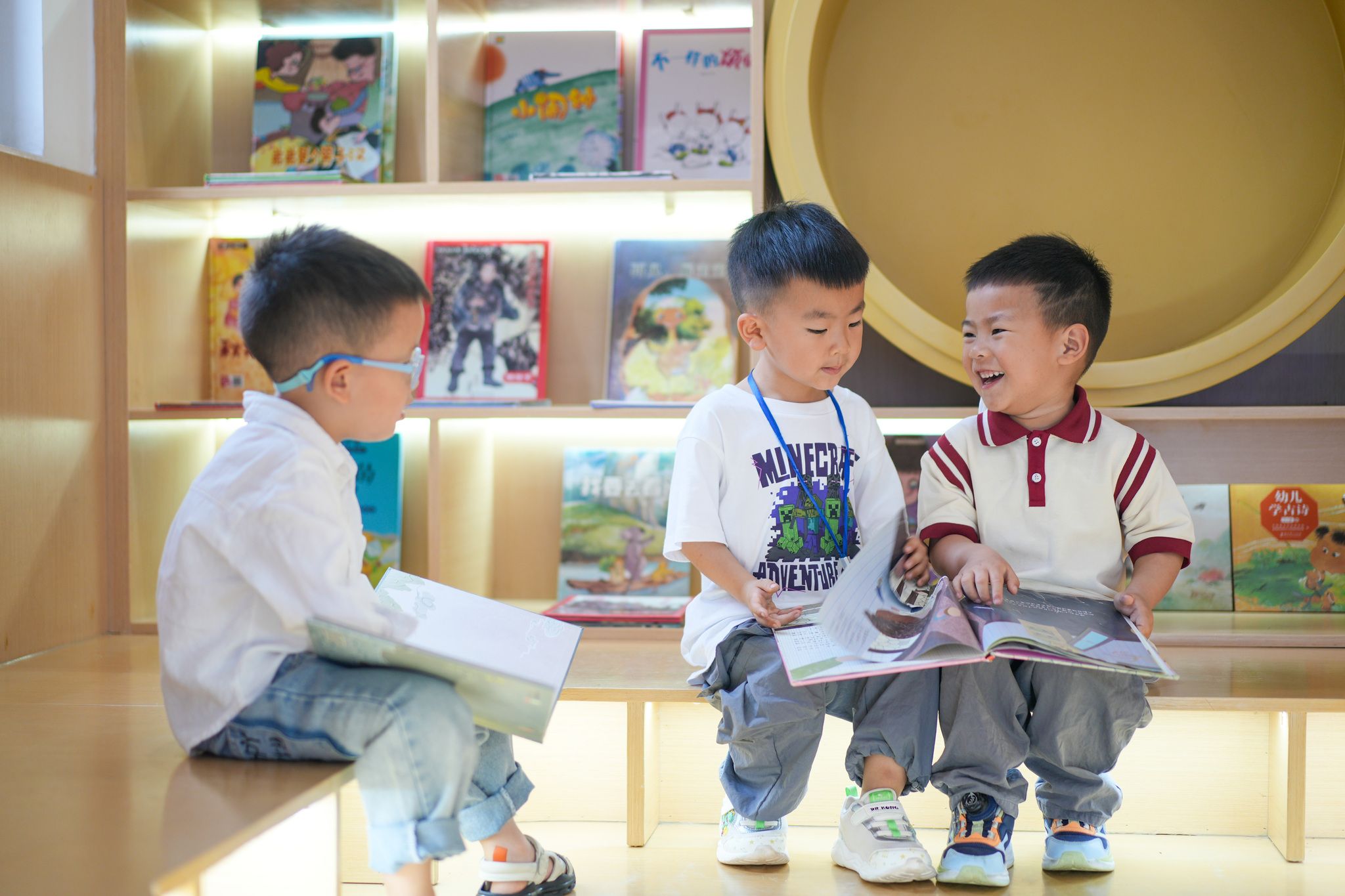 2025年4月21日,四川眉山,小朋友们正阅读自己喜爱的书籍。