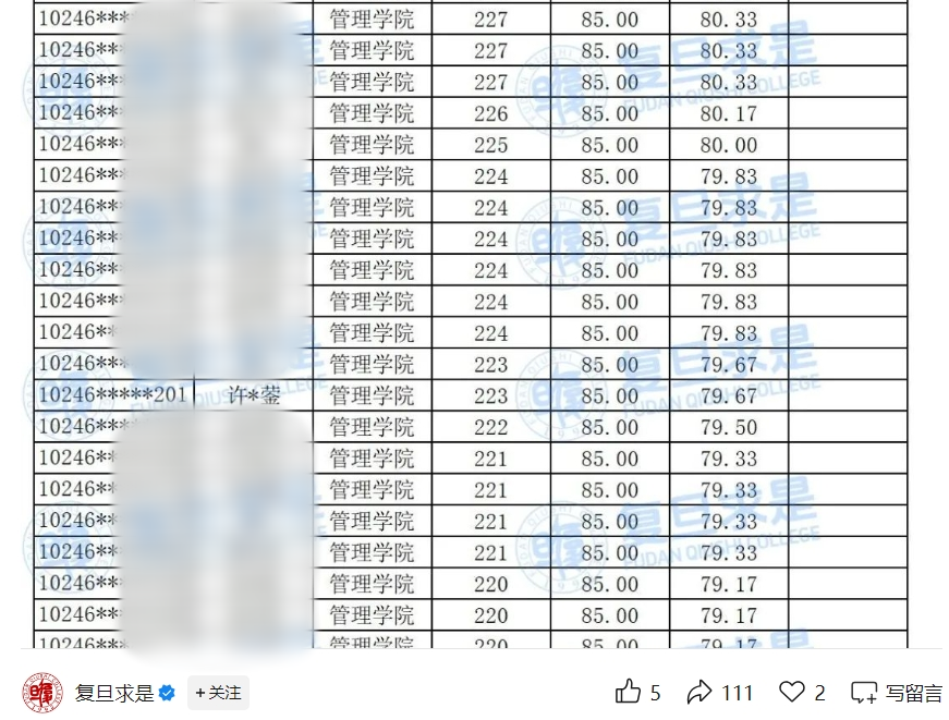 4月23日晚,复旦公布2025入学复旦管院MBA、EMBA、MPAcc项目拟录取考情分析,有网友发现,其中就有网红博主“迅猛龙 特蕾莎”许锴蓥。