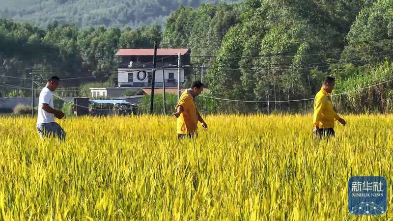 在广西柳城县,彭春林(中)和工友帮助推进“旱改水”项目建设(2024年8月27日摄)。