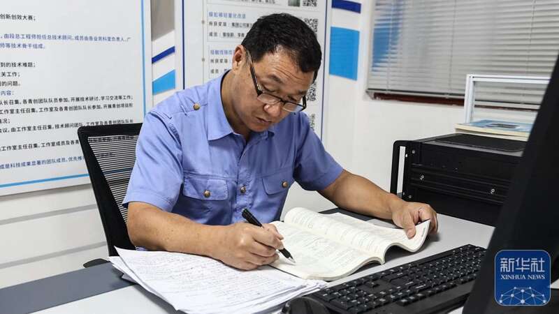 彭春林在彭春林创新工作室阅读专业书籍(4月25日摄)。