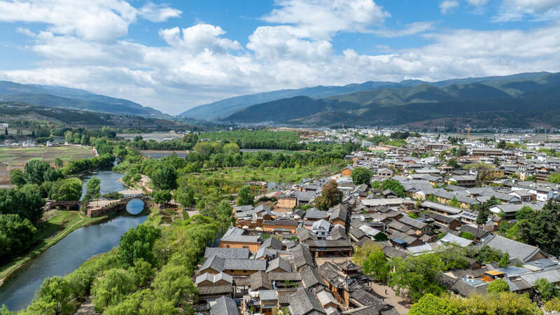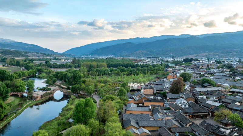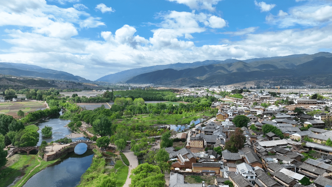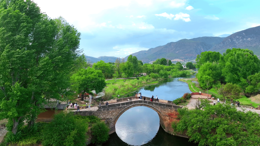 这是云南省大理州沙溪镇玉津桥一景(无人机照片,4月19日摄)。新华社记者胡超 摄