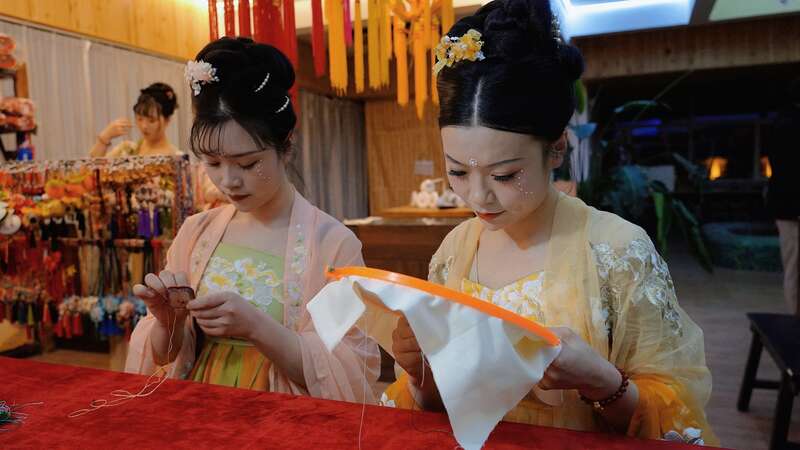 在庆州古城青砖黛瓦间,一场“青春非遗”实验悄然展开。药王洞养生小镇的“百花食肆”里,古法花酒与现烤花糕香气氤氲,老板娘为游客轻点眉心花钿,环州故城的灼华阁内,专业妆造团队为华服爱好者打造精致古风造型,龙潭叠水的画舫游船载满欢声笑语。活动巧妙嫁接文旅资源,通过集章打卡、古风运动会等互动设计,带动消费与体验双升级。