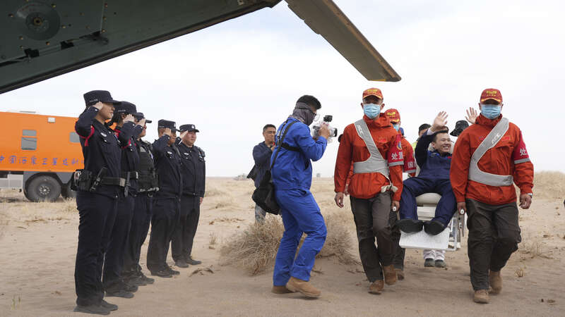 穿越戈壁荒漠,一路颠簸,中青报·中青网记者终于抵达东风着陆场。远远望见,一朵巨大的伞花在空中盛开,降落伞着陆,地面扬起数米高的沙尘。各项准备工作就绪后,航天员们依次出舱。现场爆发出热烈的欢呼声,大家高喊着“欢迎回家”“辛苦了”。