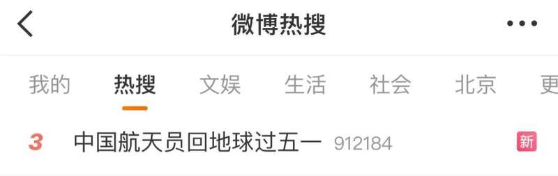 #中国航天员回地球过五一#的话题