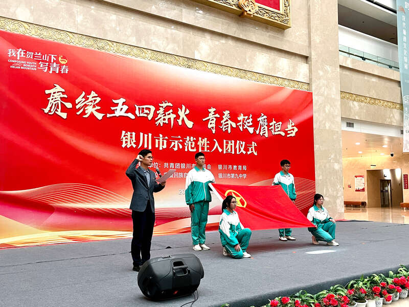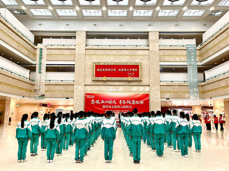 中国青年报客户端银川4月30日电(杨柳青 中青报·中青网记者 焦敏龙)4月30日,宁夏博物馆内,宁夏回族自治区银川市举行“赓续五四薪火 青春挺膺担当”示范性入团仪式。共青团银川市委、银川市教育局相关负责人及银川市第九中学100名新入团的共青团员参加仪式。