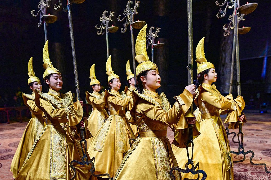“五一”假日期间,内蒙古自治区鄂尔多斯市伊金霍洛旗鄂尔多斯文化产业园景区推出沉浸式剧场,运用实景场地、机械鼓阵、全息纱幕、光影交互技术上演《凤鸣九曲》《战马传奇》等多部反映中华文明传承,展现马背民族风情的实景剧,打造文旅体验消费新场景,吸引众多游客前来度假消费。
