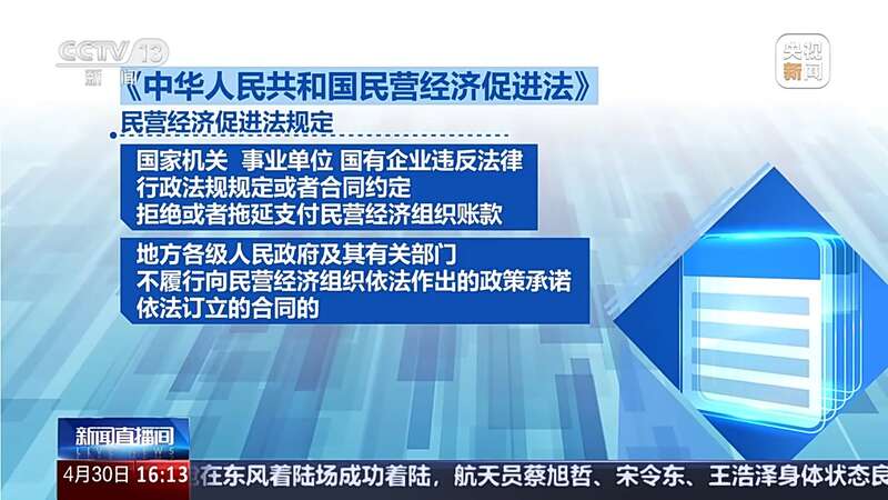 全国人大常委会法工委经济法室主任 杨合庆:针对民营经济发展中面临的公平竞争、投资融资、科技创新、服务保障、权益保护以及民营经济自身发展存在的问题和薄弱环节,充分吸收改革成果和实践经验,有针对性地细化、完善相关制度措施,并与有关法律规定作好衔接。