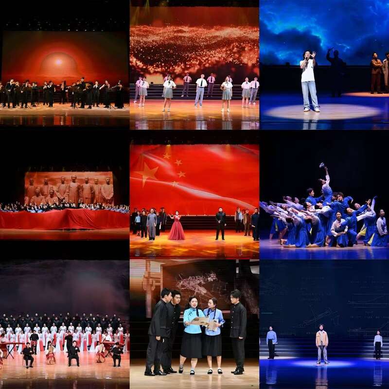 交响曲《太阳照常升起》为演出拉开序幕。舞蹈《茉莉芬芳》以象征纯洁的茉莉花,致敬先辈们对祖国清澈的爱;民乐合唱《保卫黄河》、短剧《烽火一课》饱含青年落子无悔的选择与诉说;合唱《国际歌》表达了同学们对世界和平与发展的美好愿景;短剧《远洋来信》、情景诵《等待》展现出万千先辈为报效祖国无私奉献的精神;合唱《理想》、舞蹈《晨光曲》蕴含青年奋勇前进的昂扬姿态……