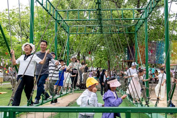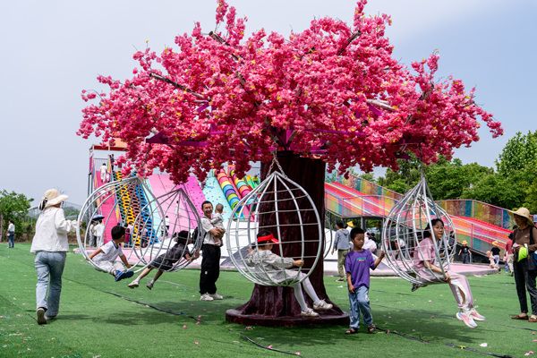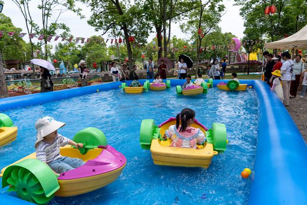 2025年5月3日,浙江金华,金东区澧浦镇锁园村儿童乐园是孩子们游玩的天堂,在家长的陪同下快乐度过五一小长假。