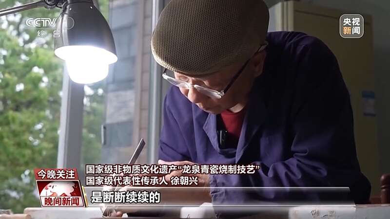 国家级非物质文化遗产“龙泉青瓷烧制技艺” 国家级代表性传承人 徐朝兴:老一辈用脚踩的设备有缺陷,跳刀跳不起来,断断续续的,没有规律。我真正掌握跳刀是2000年,我们要自己寻找新的出路。