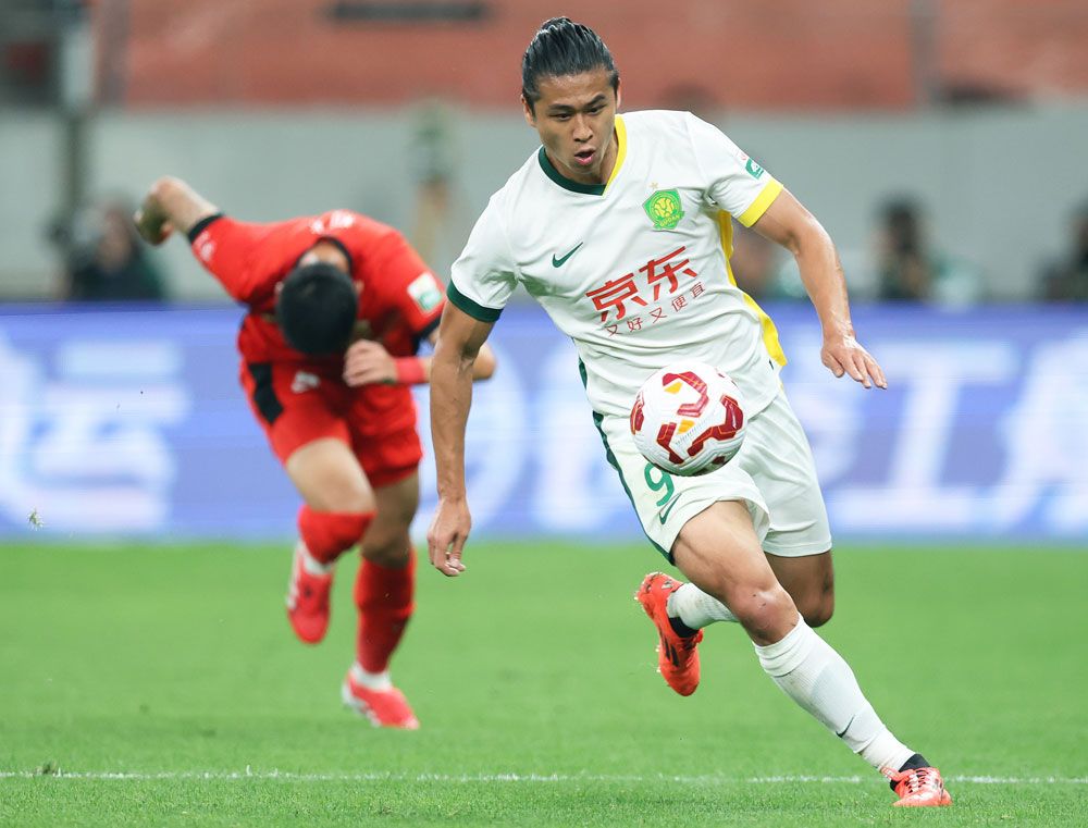 北京国安队9号张玉宁带球突破。刘占崑/摄