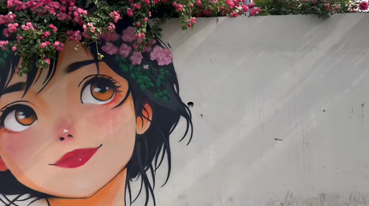 五一前夕,兄弟俩在余杭五常街头耗时一天创作的月季花少女墙绘,与此前在外地完成的“脑袋长草”系列形成趣味呼应,成为街头艺术新亮点。
