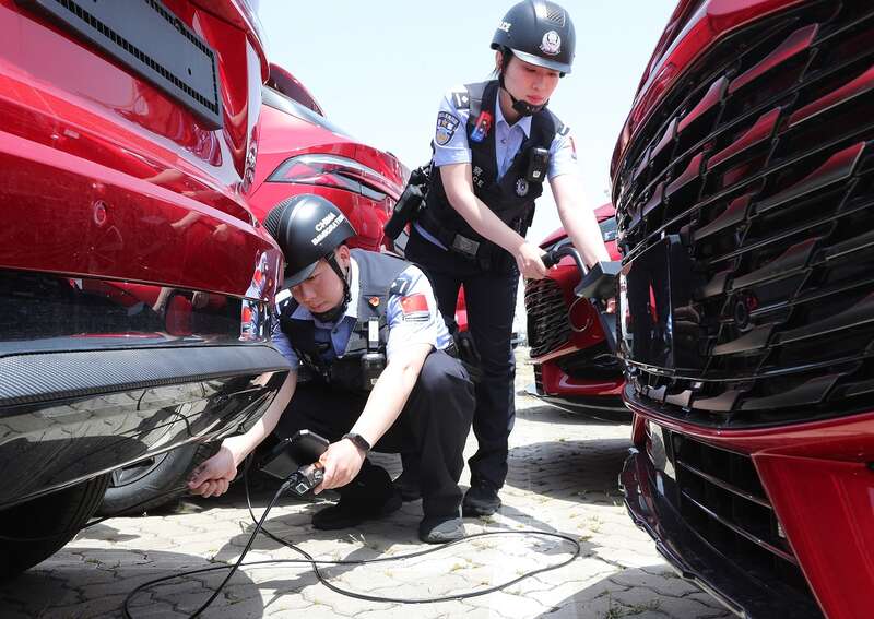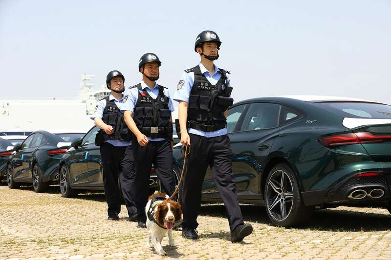 “大家要重点检查车内、车底和后备厢!”当天,南京港边检站民警杨帆与同事一起,采用人工+警犬+电子设备“三维”安检模式,缩短车辆装船验放时间。