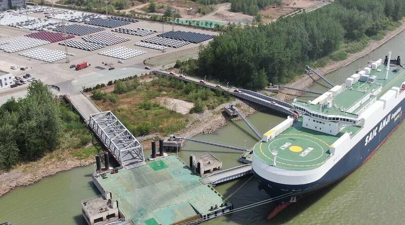 作为长三角地区新兴汽车出口通道,南京港江盛滚装码头今年初获批临时对外开放,出口汽车可以从该码头直接“坐”船出海。