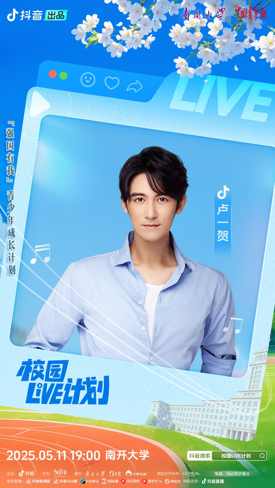 中国青年报客户端讯(中青报·中青网记者 李想)5月11日晚,南开大学津南校区体育场将化身为一片音乐星海。由抖音出品、中国青年报社主办,南开大学、中青在线、中青校媒联合承办,欧莱雅赞助支持的《校园LIVE计划》南开大学站——“心有繁星,追光而遇”主题音乐演出活动即将开演。