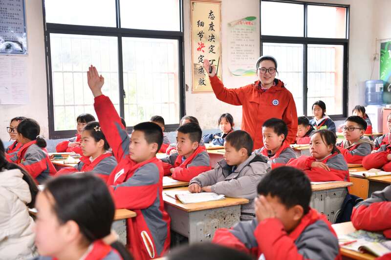 去年8月,郭喜亮、陈鑫和唐佳丽等新一届研支团成员跨越三千多里,从江苏徐州奔赴贵州的大山深处。他们接过上届研支团的接力棒,开启为期一年的支教生活。课堂上,他们是英语、科学、道法、体育等科目的老师;课后,他们是孩子们无话不谈的知心伙伴。