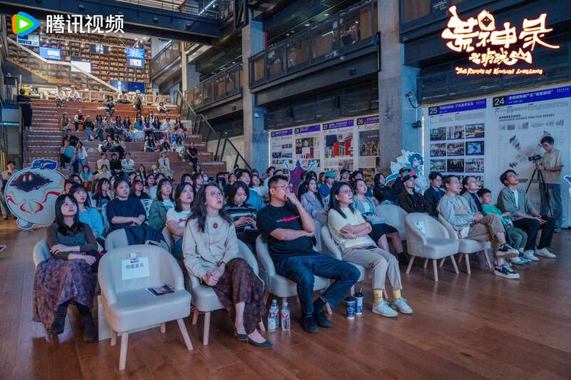 映后交流对谈中,主创团队与嘉宾们解析了《荒神录之玲珑山》中使用的传统文化元素,并与专业师生分享了更多动画创作的历程。