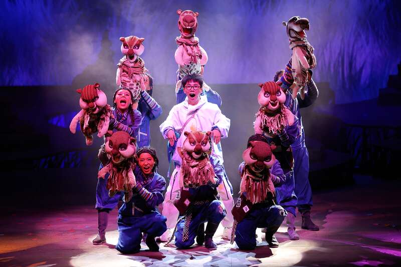 作为一部现实主义题材儿童剧,剧中对藏地自然生态和“中华水塔”三江源有着生动展现。剧中运用舞美、灯光、音乐等多种形式,展现了雪山、青草、河流这三大视觉核心形象;玛尼石墙、酥油灯等藏族元素的巧妙融入,构建出诗化的藏地舞台空间。高原动物也成为一大看点,旱獭、野牦牛、白唇鹿、赤麻鸭、斑头雁等栖息于三江源的高原动物,以巨型偶、布袋偶、手持偶等形式灵动呈现。