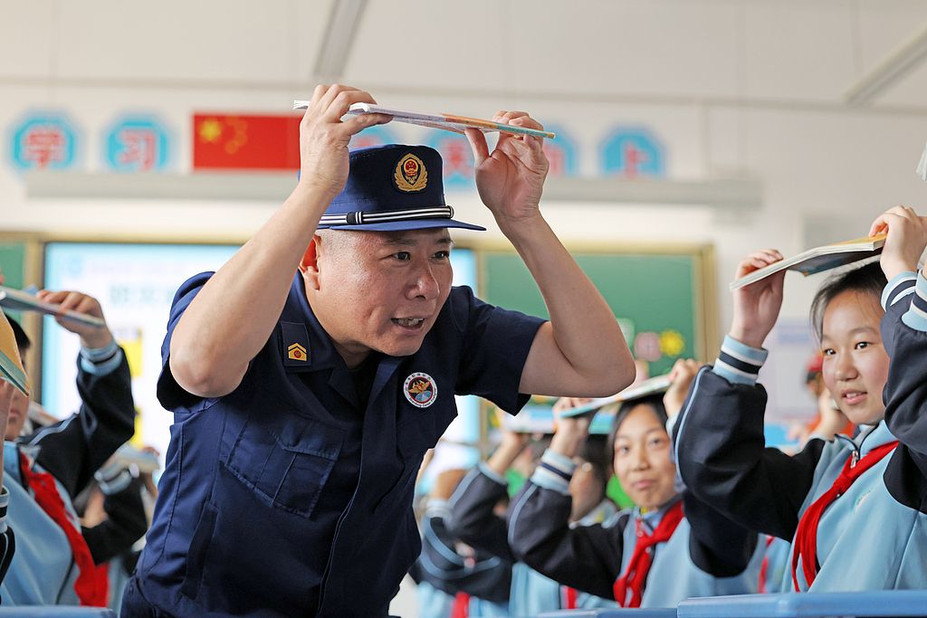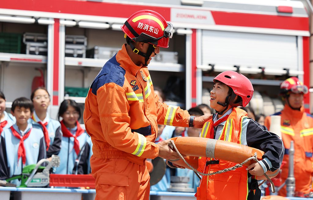 山东郯城:小学生迎接全国防灾减灾日 解锁“沉浸式”消防教育