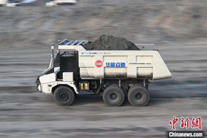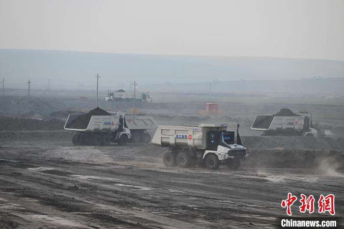 5月15日,内蒙古呼伦贝尔,无人电动矿卡 “华能睿驰”在伊敏露天矿运行中。当日,全球首个百台纯电动无人驾驶矿用卡车集群在内蒙古投运。据悉,此次投运的“华能睿驰”车型取消了驾驶室的设计。车内安装了564千瓦时的磷酸铁锂电池组,单次换电时间小于6分钟,一次充满电最多需要1小时,满电状态可拉载90吨货物行驶约60公里。中新社记者 刘文华 摄