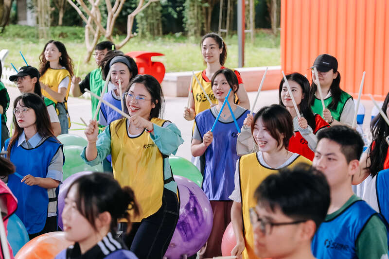 活动伊始,百名单身青年手持鼓槌,随音乐节奏敲击有氧鼓。团福州市委供图