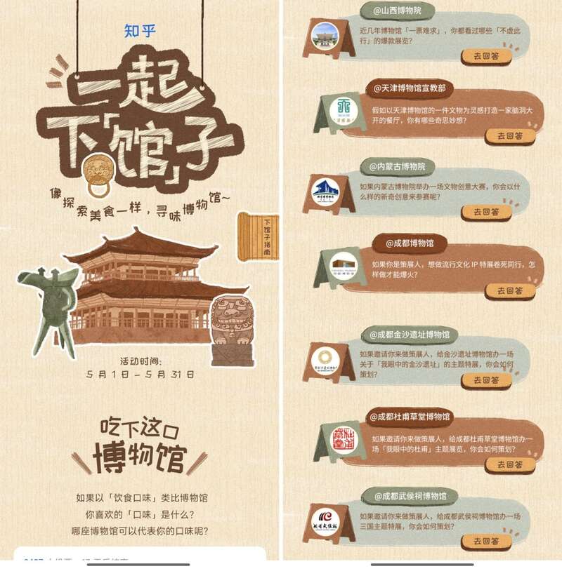各家博物馆在知乎上发起的讨论也吸引博物馆爱好者讨论。“如果你是策展人,你将如何策划一场博物馆展览?”众多网友结合逛展经验、专业历史人文知识,向博物馆“反向”输出了不少好点子。