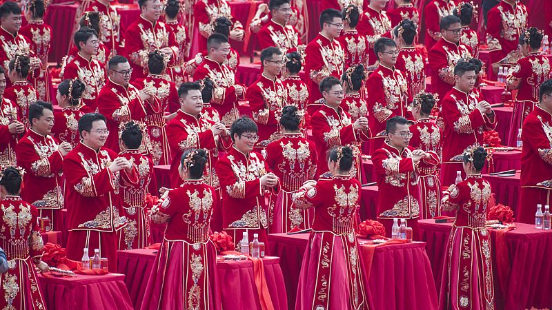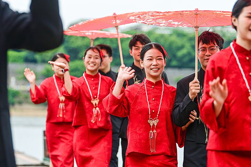 2025年5月20日,新人举办集体婚礼,以简约且庄重的方式步入婚姻殿堂,旨在传承和弘扬中华民族优秀传统文化,以集体婚礼的形式推动婚俗改革,倡导喜事简办、喜事新办的文明新风。
