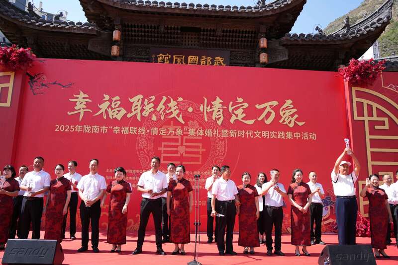 中国青年报客户端讯(中青报•中青网记者马富春 通讯员 胡本平)青山为聘、碧水为媒。5月20日上午,2025年甘肃省陇南市“幸福联线·情定万象”集体婚礼暨新时代文明实践集中活动在陇南市武都区万象街举行。87对新人、8对银婚、4对金婚夫妇相约武都区万象街,开启一场融合“烟火气”“古典美”与“心动值”的浪漫新体验。