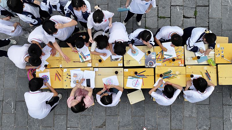 2025年5月21日,湖南省永州市道县第一中学,学生在进行曼陀罗绘画。