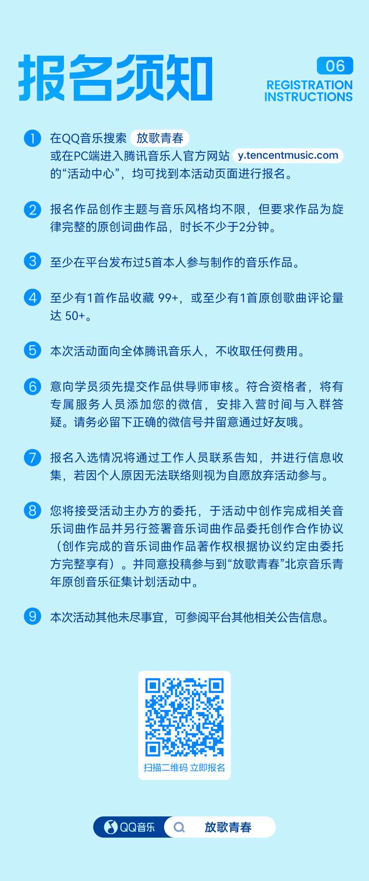 据主办方介绍,“放歌青春”联合创作营今年与腾讯音乐人、TME音乐学堂联动。腾讯音乐人是华语地区覆盖范围广泛的原创音乐平台,TME音乐学堂自成立以来,通过创作营、大师课等多元内容扶持广大腾讯音乐人提升创作能力、链接行业资源。基于共同的守护音乐梦想目标,今年双方携手,希望能够孕育出更多优秀的音乐作品和音乐人才,促进中国原创音乐的高质量发展。