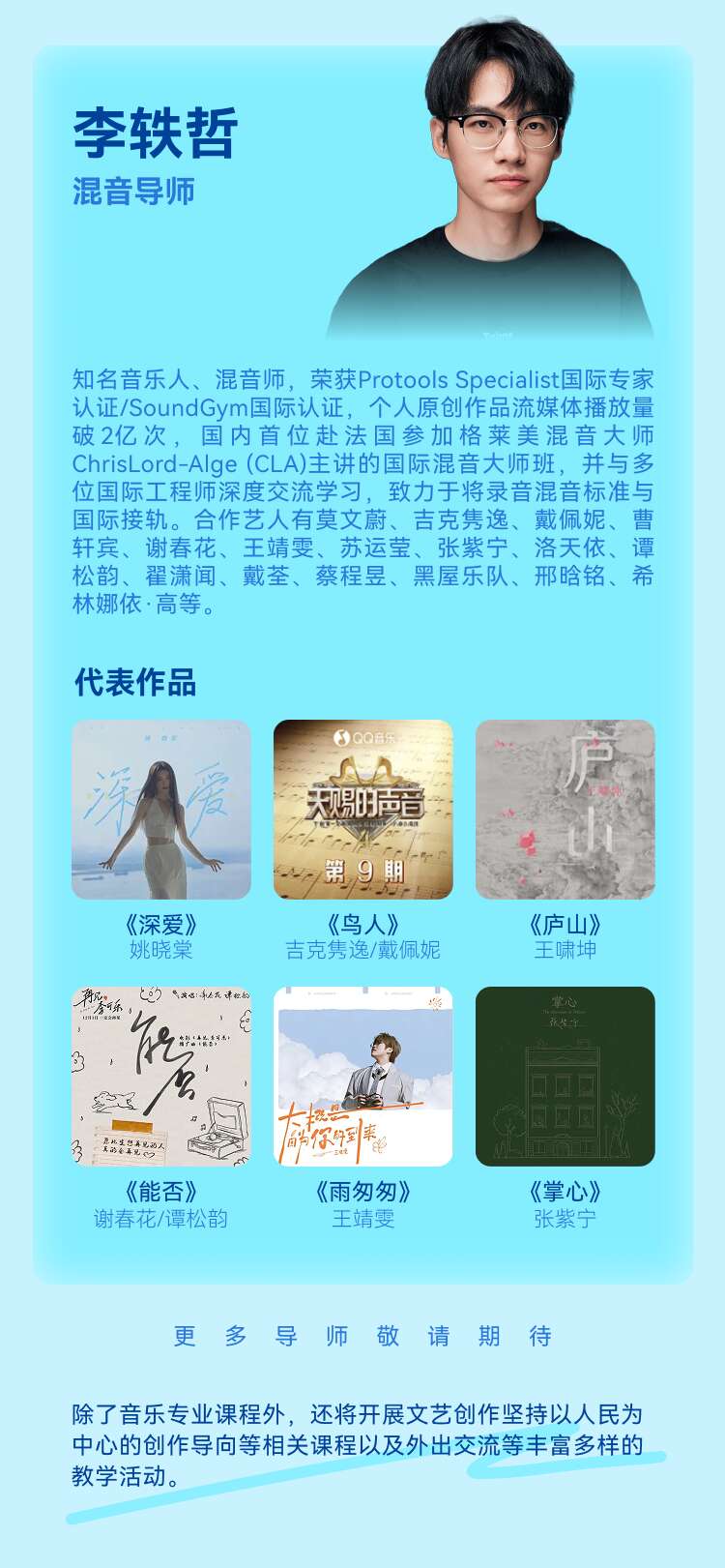 据活动主办方介绍,本次创作营汇聚了北京市团校、中央团校讲师团与腾讯音乐人、TME音乐学堂推荐的业界知名音乐人、词作家、音乐制作人组成导师天团。培训期间,学员不仅能接受专业课程训练,还将接受文艺创作坚持以人民为导向等思想理论学习,让音乐创作与时代主旋律同频共振。学员还将分组完成原创歌曲创作,通过教学、实践、参访交流、创作展演等全方位流程,切实提升音乐创作与表演硬实力。