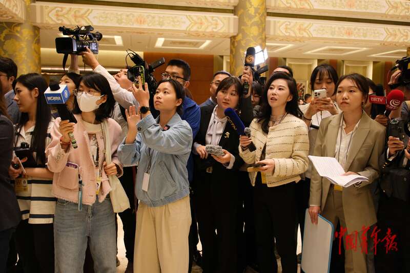 5月22日,北京,主题为“拥抱数智时代,携手共同发展”的2025年全球贸易投资促进峰会于当日举行。会前,媒体记者望向入口,等待采访参会嘉宾。中青报·中青网记者 田嘉硕/摄