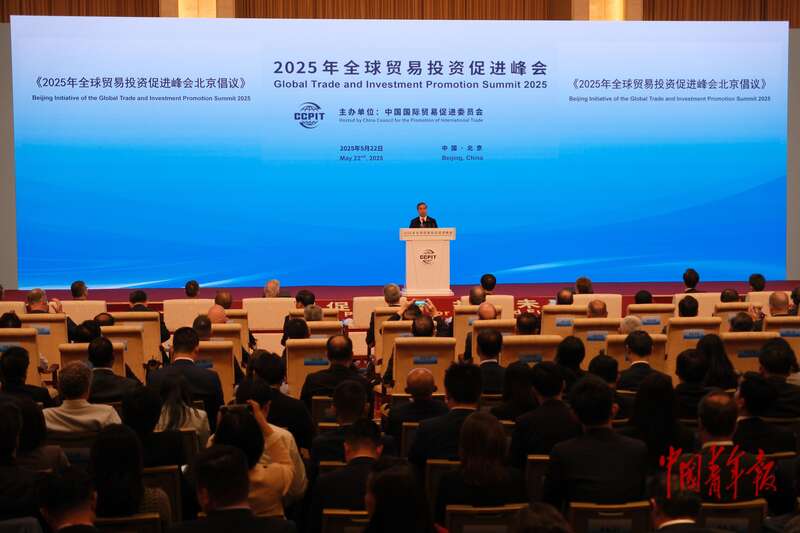 5月22日,北京,主题为“拥抱数智时代,携手共同发展”的2025年全球贸易投资促进峰会于当日举行。中国贸促会会长任鸿斌代表与会工商界发布《2025年全球贸易投资促进峰会北京倡议》。《倡议》经与会各国工商界充分沟通协商,达成广泛共识,主要包括六点倡议:一是构建数智化协同体系,维护全球产业链供应链安全稳定;二是共享数智技术红利,营造开放公平的创新生态;三是发挥数智时代新优势,促进全球贸易投资自由化便利化;四是加强数智技术应用,赋能绿色低碳转型;五是推动人工智能健康发展,增进人类共同福祉;六是深化全球工商界合作,促进全球可持续发展。中青报·中青网记者 田嘉硕/摄