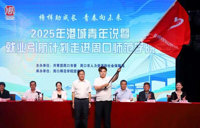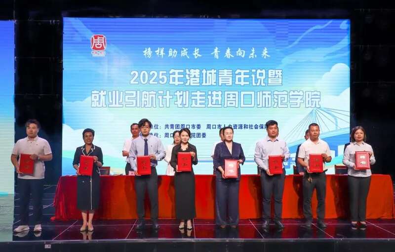 中国青年报客户端讯(中青报·中青网见习记者 李梓昂 记者 潘志贤)近日,团周口市委联合市人社局等部门开展“榜样助成长青春向未来”2025年港城青年说暨就业引航计划走进高校活动,启动仪式在周口师范学院举行。新时代青年先锋、周口市青年就业创业指导师、周口师范学院师生代表等500余人参加活动。