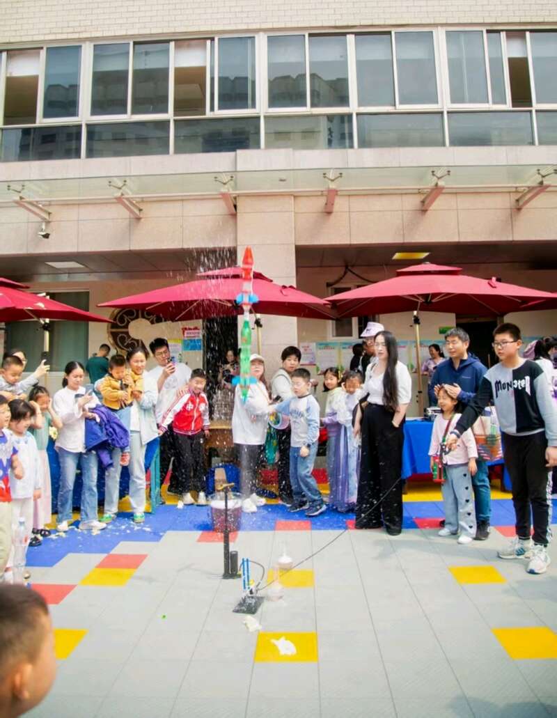 活动现场设置机器人编程、3D打印、AR探秘等9个体验区,孩子们在专业导师指导下动手组装智能小车、操控仿生机械臂,参与磁悬浮实验、彩虹泡泡秀等趣味项目。亲子协作环节中,家长与孩子共同挑战“火山喷发”模拟实验,感受科学魅力;长征火箭模型旁,水火箭发射演示引发阵阵欢呼。