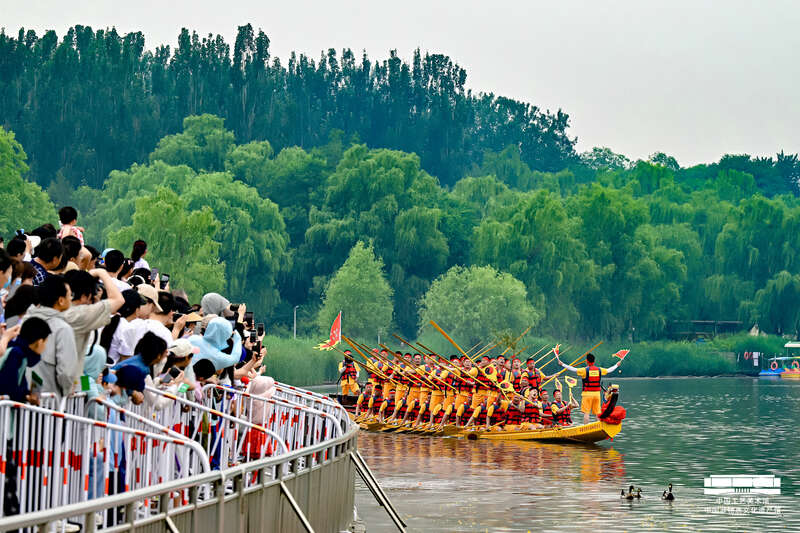中国青年报客户端讯(中青报·中青网记者 蒋肖斌)5月31日端午节当天,“‘粽’情乐享非遗馆 奥海载歌龙舟欢”端午节主题系列活动,在北京奥林匹克森林公园拉开帷幕。来自湖南益阳赫山区兰溪镇的双桡龙舟,以劈波斩浪之势亮相首都。