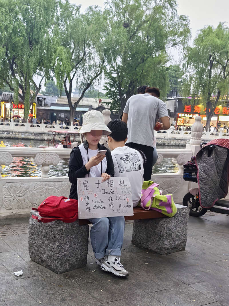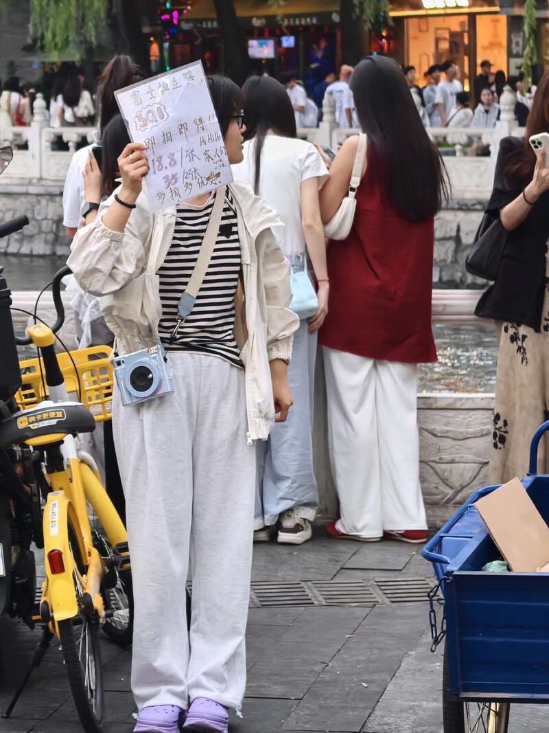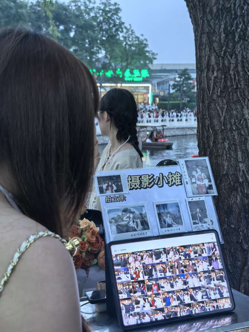 “现场选片,不满意立即重拍”“百种POSE(姿势)教学,张张出片”“富士胶片感直出,原图也能打”……社交平台上,有博主记录下自己摆摊拍照的经历,并打起了广告。“每天14点到18点,坐标:什刹海南门涮肉附近,认准黄色书包,粉色玫瑰花道具。”从此前的记录来看,她自称其中一天出摊5个多小时,收入近800元。