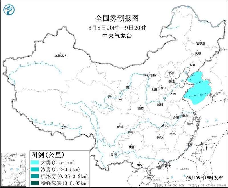 预计,6月8日夜间至9日白天,渤海海峡、黄海大部海域、辽东半岛东部沿岸海域、山东半岛附近沿岸海域、成山头附近海域、大连港、青岛港、日照港将有能见度不足1公里的大雾。