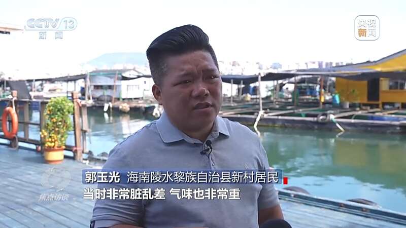海南陵水黎族自治县新村居民 郭玉光:当时这边大面积开始养鱼了,当时非常脏乱差,气味也非常重,缺氧的死鱼就很多,当时谁都不管,就丢到海里面,臭了一片海。