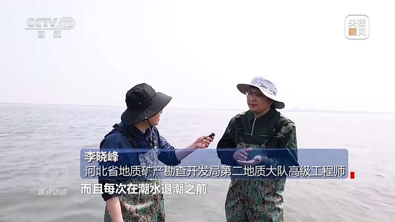 河北省地质矿产勘查开发局第二地质大队高级工程师 李晓峰:潮汐时间只有三四个小时可以种,我们把所有人力集中到这儿,而且每次在潮水退潮之前,提前两个小时到这儿,就是为了在有限的时间里把草种下去。如果遇见大风大浪,我们也要下去海里,要不这批苗就浪费了。