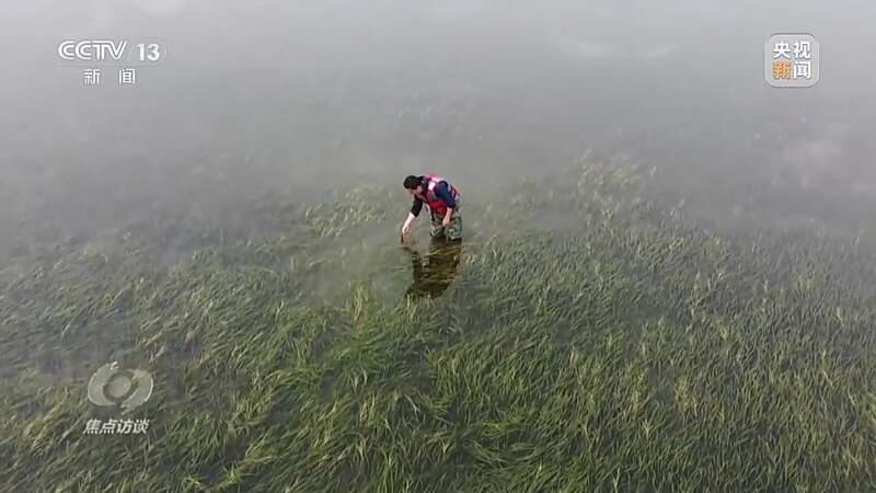 记者跟随河北省水勘院的监测队伍,进入到曹妃甸附近一片浅海区域。有着海底草原之称的曹妃甸海草床种的是蔓草,它是渤海区域常见的一种海草品种,对于整个海洋生态系统有着重要的支撑作用。这些海草大多是通过人工修复种植的,6年时间这里种出了超过900公顷的蔓草海草床。