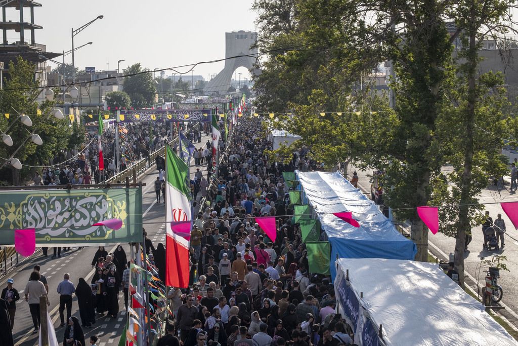 当地时间2025年6月14日,伊朗德黑兰西部,伊朗哀悼者在阿扎迪大街参加名为“10公里派对”的宗教集会,谴责以色列对伊朗的袭击。
