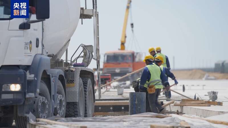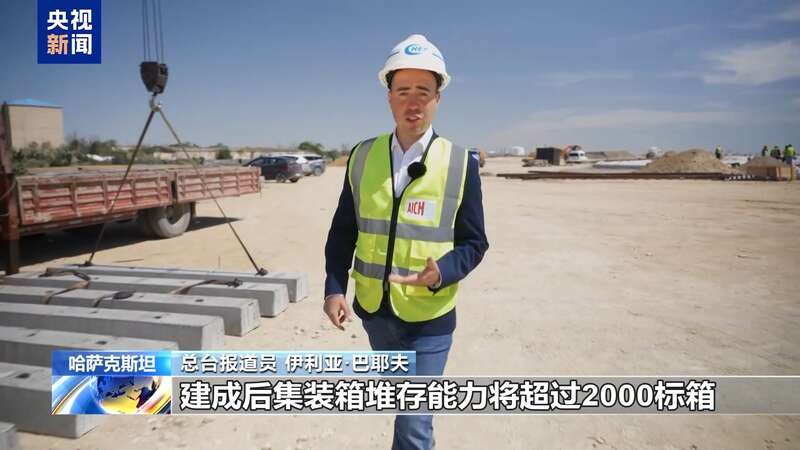 总台报道员 伊利亚·巴耶夫:该项目建设工程占地面积达19公顷,施工采用全天候作业模式,建成后集装箱堆存能力将超过2000标箱,为保障物流效率,配套新建了11条铁路专用线,目前首批轨道铺设工程已正式启动。