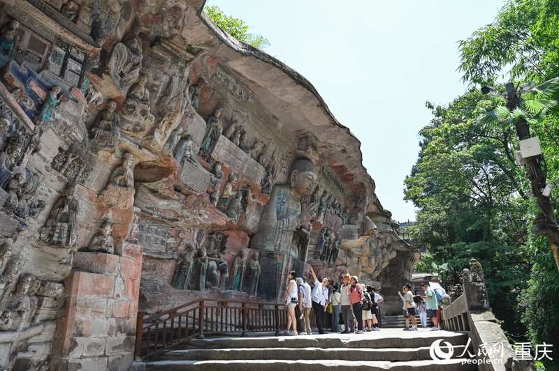 盛夏六月,宝顶山麓,35度的高温,也挡不住游客到重庆大足石刻景区参观的热情。车刚停稳,大足石刻旅游集团有限公司分管负责人刘爱华热情地迎了上来:“你们来得正是时候,《天下大足》9:30开映,《大足石刻》9:55开映。”