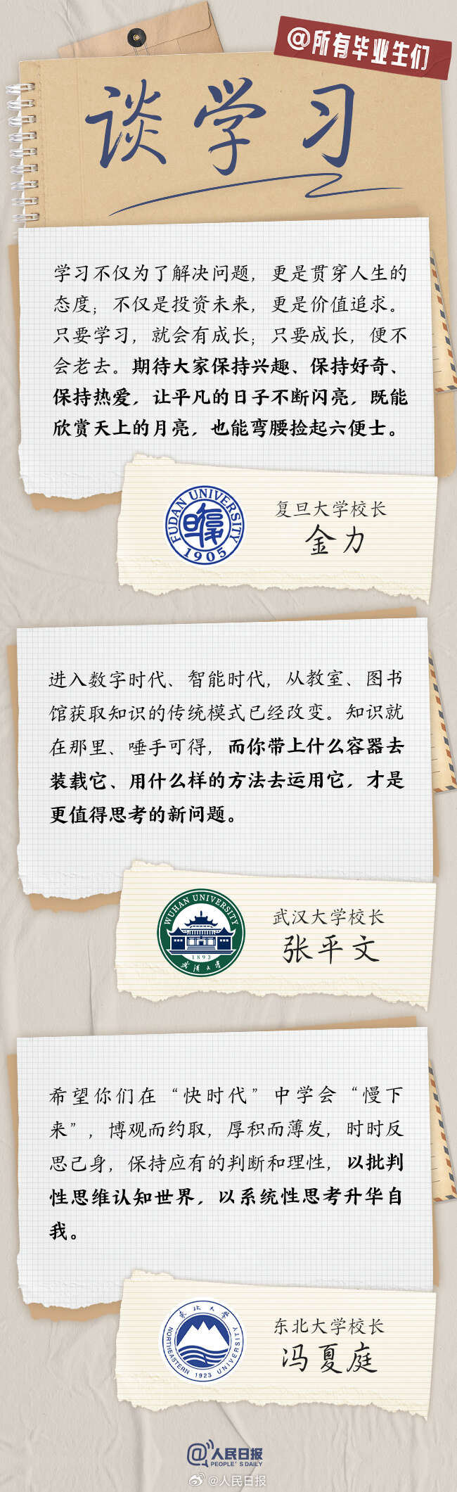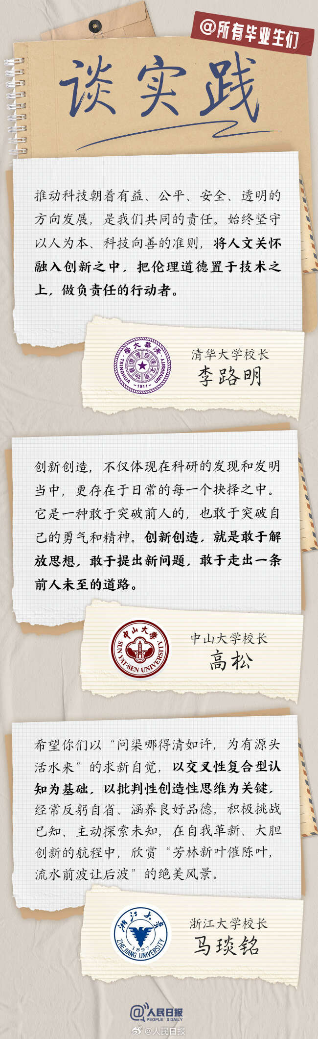 又到毕业季,各高校毕业典礼陆续举行。在这堂大学生涯“最后一课”上,校长留下了哪些嘱托与期望?谈实践、谈志向、谈奋斗、谈人工智能……愿这组寄语,成为你前行路上的力量与陪伴。