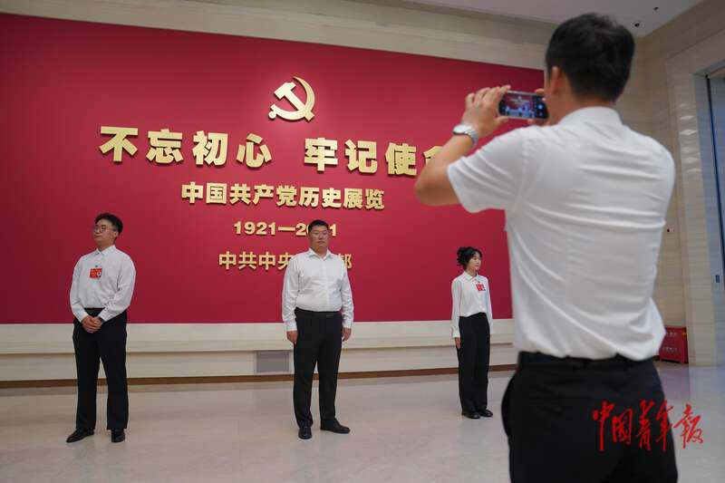 7月3日,北京,中华全国学生联合会第二十八次代表大会完成各项议程,上午在京闭幕后,学联代表及港澳观摩团赴中国共产党历史展览馆参观学习。中青报·中青网记者 田嘉硕/摄
