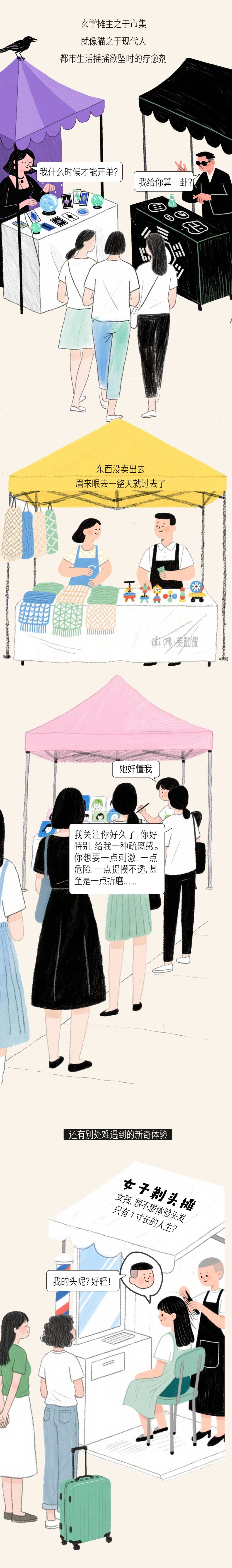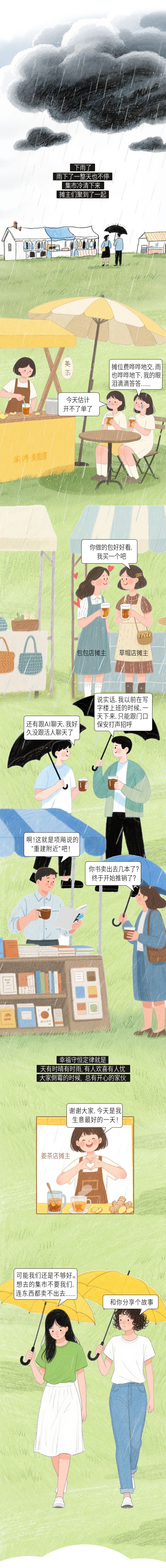 过暑假仿佛是一种肌肉记忆,想要舒展身体、休息,然后懒洋洋地(或者专注地——)探索世界,探索自我。摆摊是个很不错的方式。条漫的主人公之一布高兴的原型是我的室友,曾沉痛写下“985海归又如何,谁的人生不迷茫?”,然后她就摆摊去了,有了后来的故事。前几天我问她,快三十岁了你会焦虑吗?她又快又坚决地回答:“我不焦虑。”看来她已经没那么迷茫了。