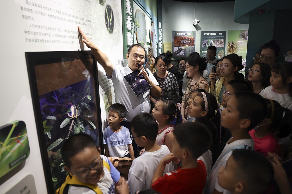 2025年7月16日晚,2025年国家自然博物馆“博物馆之夜”在北京启幕。本次活动将持续至8月15日,在为期一个月的活动时间里,国家自然博物馆将每晚18:00-21:00开放夜场参观(周二闭馆日除外),并以“光韵”为主题,举办多种形式的晚间活动。 中新社记者 田雨昊 摄